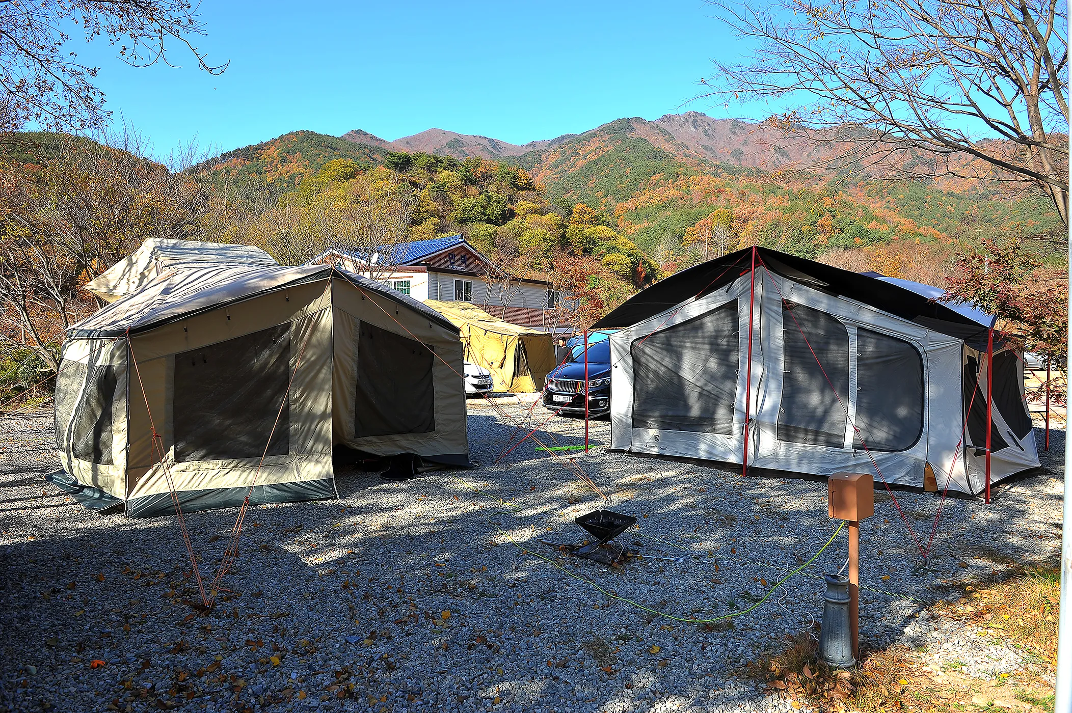 시간적 여유가 생겼나요? 깨뜻한 물소리가 살아숨시는 글램핑 어때요?